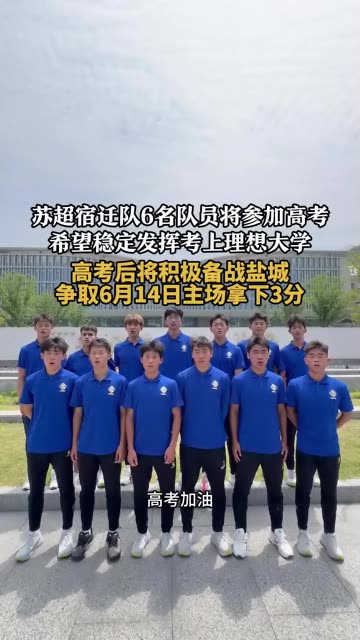 江苏宿迁。苏超宿迁队6名队员将参加高考,希望稳定发挥考上理想大学,高考后将积极备战盐城,争取6...