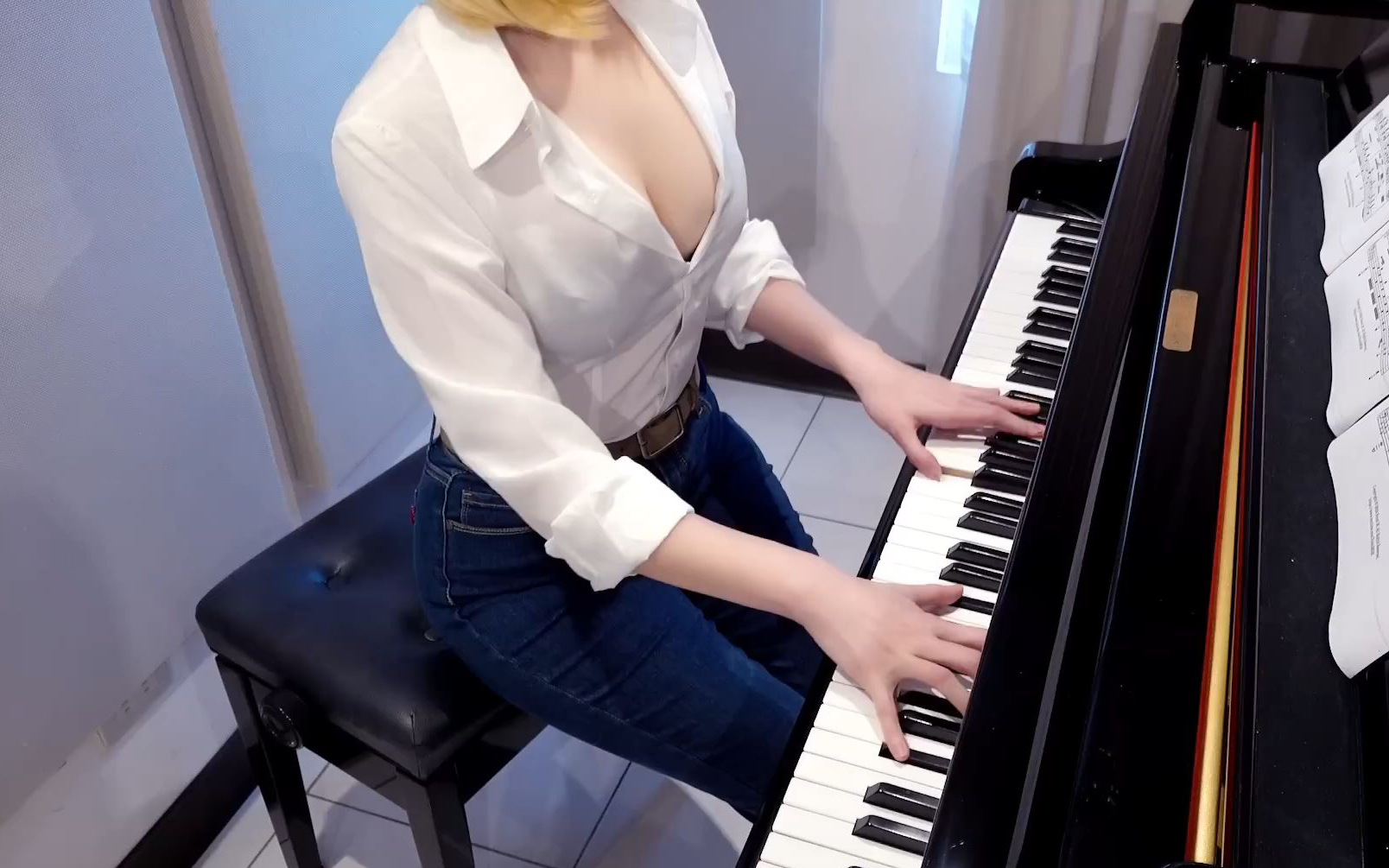这钢琴真大,这衬衫真白!车慧怡太靓了~