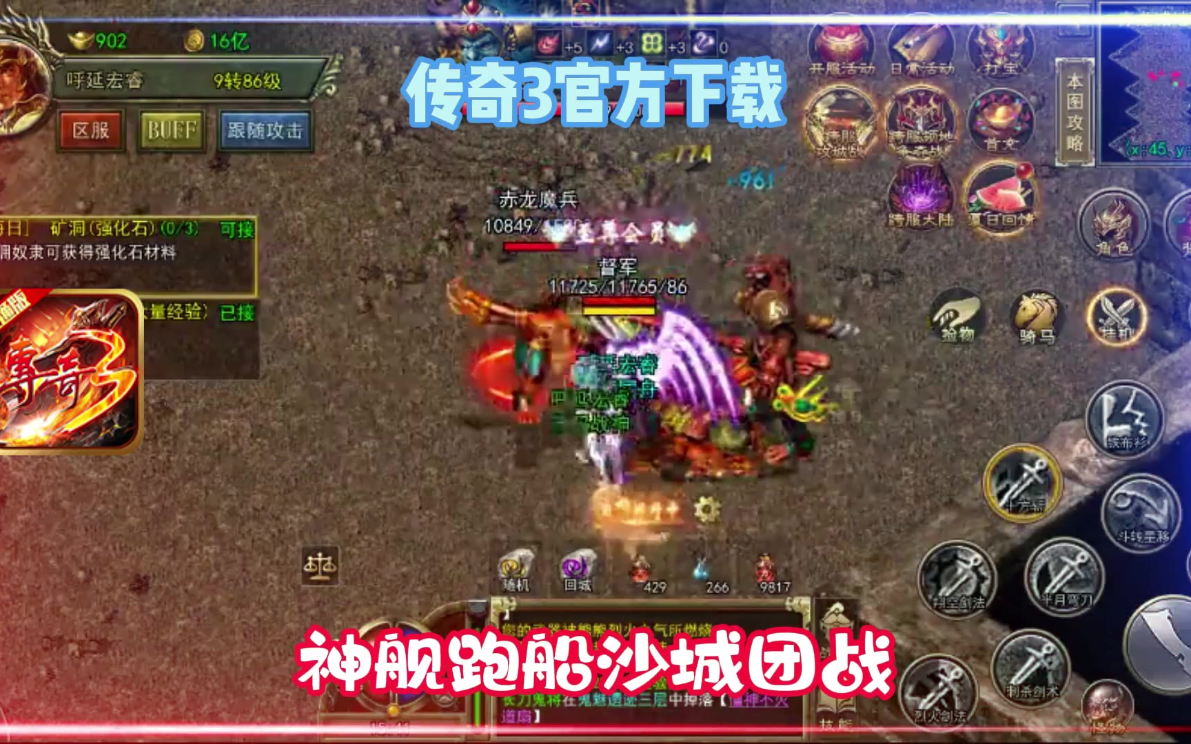 共6张传奇3光通版:3月26日新区开启,经典复古传奇手游,复刻光通1.45版本,千人冲榜,带你再战沙城!