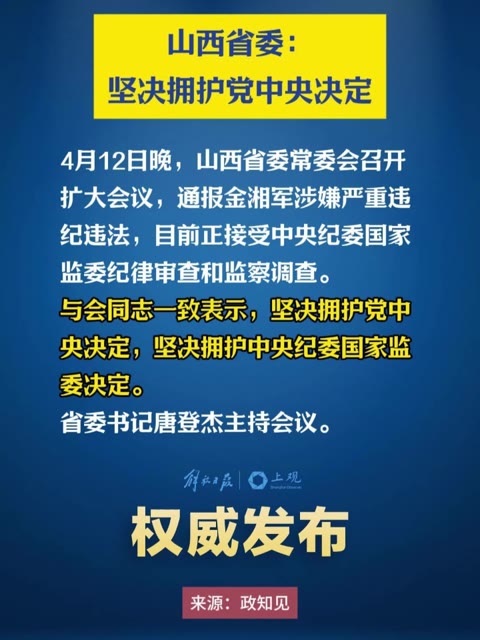 59次播放 | 00:05山西省委:坚决拥护党中央决定。山西省长金湘军涉嫌严重违纪违法,目前正接受中央纪委国家监委纪律审...