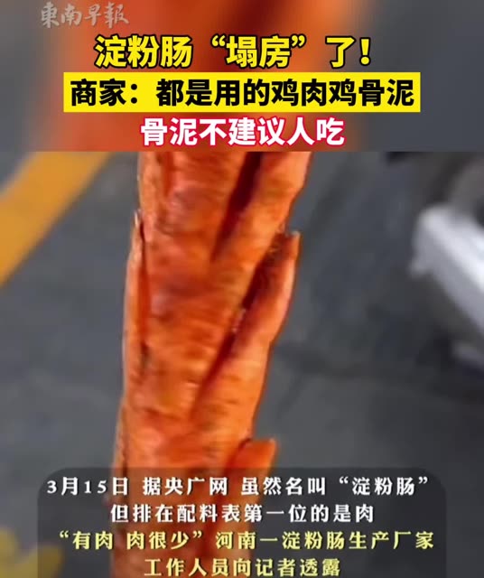 19次播放 | 00:16淀粉肠“塌房”了!商家:都是用的鸡肉鸡骨泥,不建议人吃
