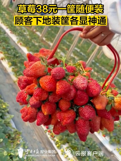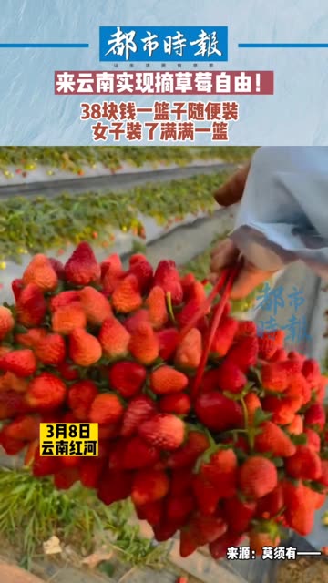 0次播放 | 00:123月8日,云南红河,一草莓园老板推出“38元给个筐,草莓随便装”活动,顾客各凭本事将草莓装满筐...