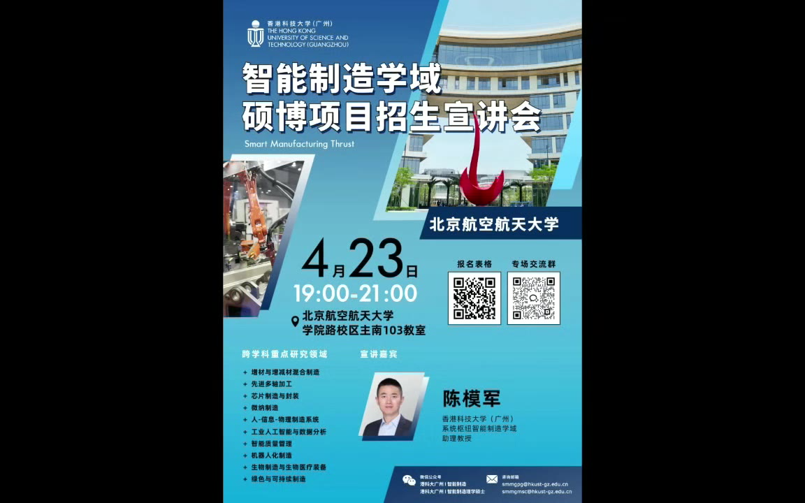 香港科技大学(广州)智能制造学域硕博招生宣讲会—北京航空航天大学专场