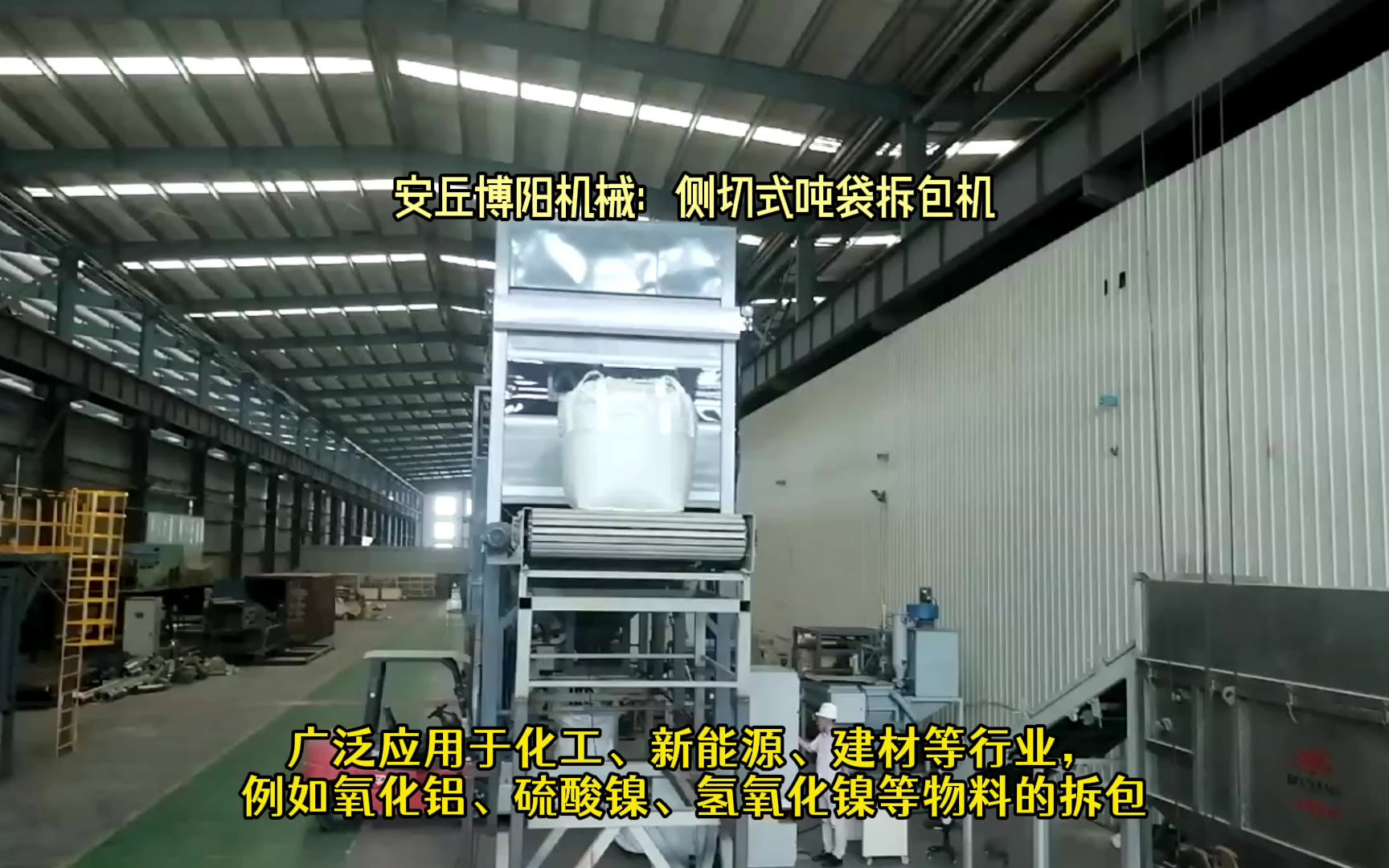 0次播放 | 00:41硫酸镍全自动吨包破包机 吨袋全自动拆袋机攻克人工拆包难题