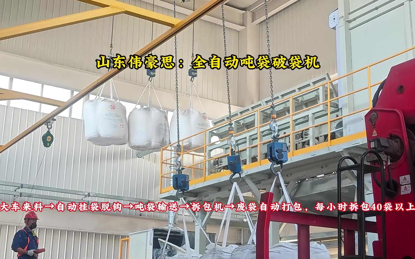 0次播放 | 00:22氢氧化锂全自动吨袋拆包系统 山东全自动破袋机现场