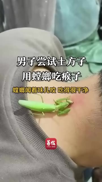 男子尝试土方子用螳螂吃瘊子:螳螂闻着味儿咬 吃得很干净