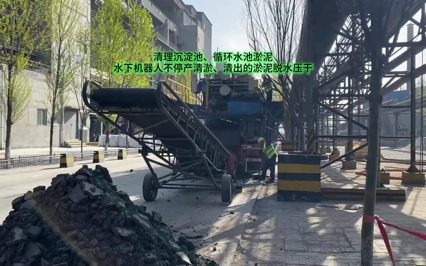0次播放 | 01:26清理沉淀池、循环水池淤泥,水下机器人不停产清淤、清出的淤泥脱水压干
