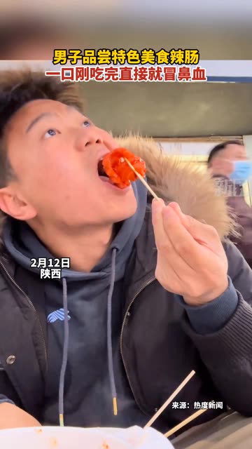 89次播放 | 02:02男子品尝特色美食辣肠 一口刚吃完直接就冒鼻血 6