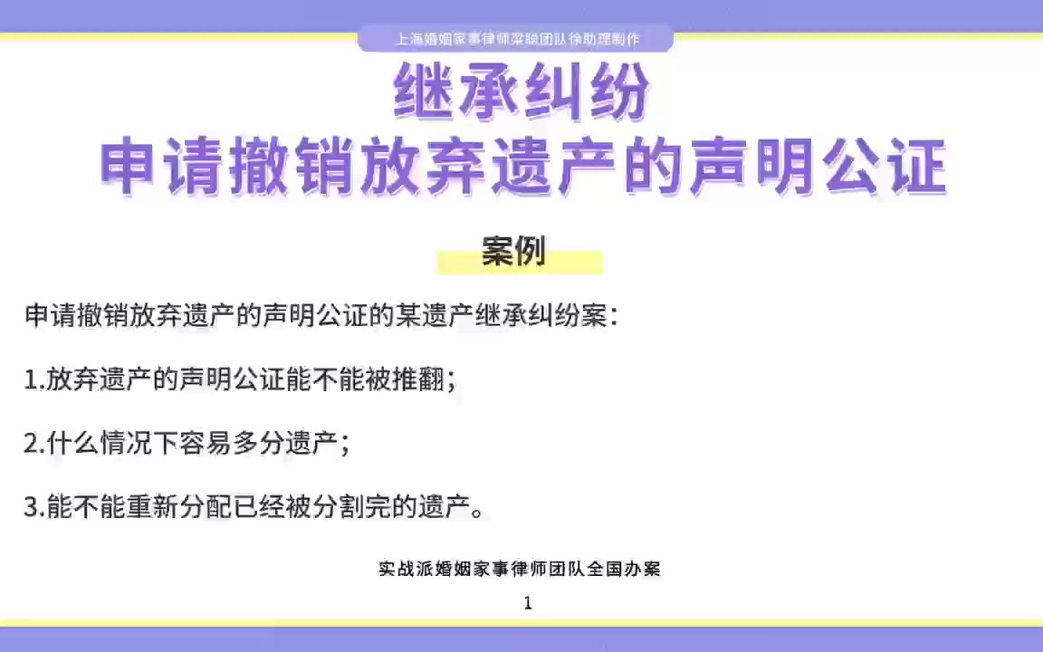 上海婚姻家事律师梁聪:继承纠纷,申请撤销放弃遗产的声明公证