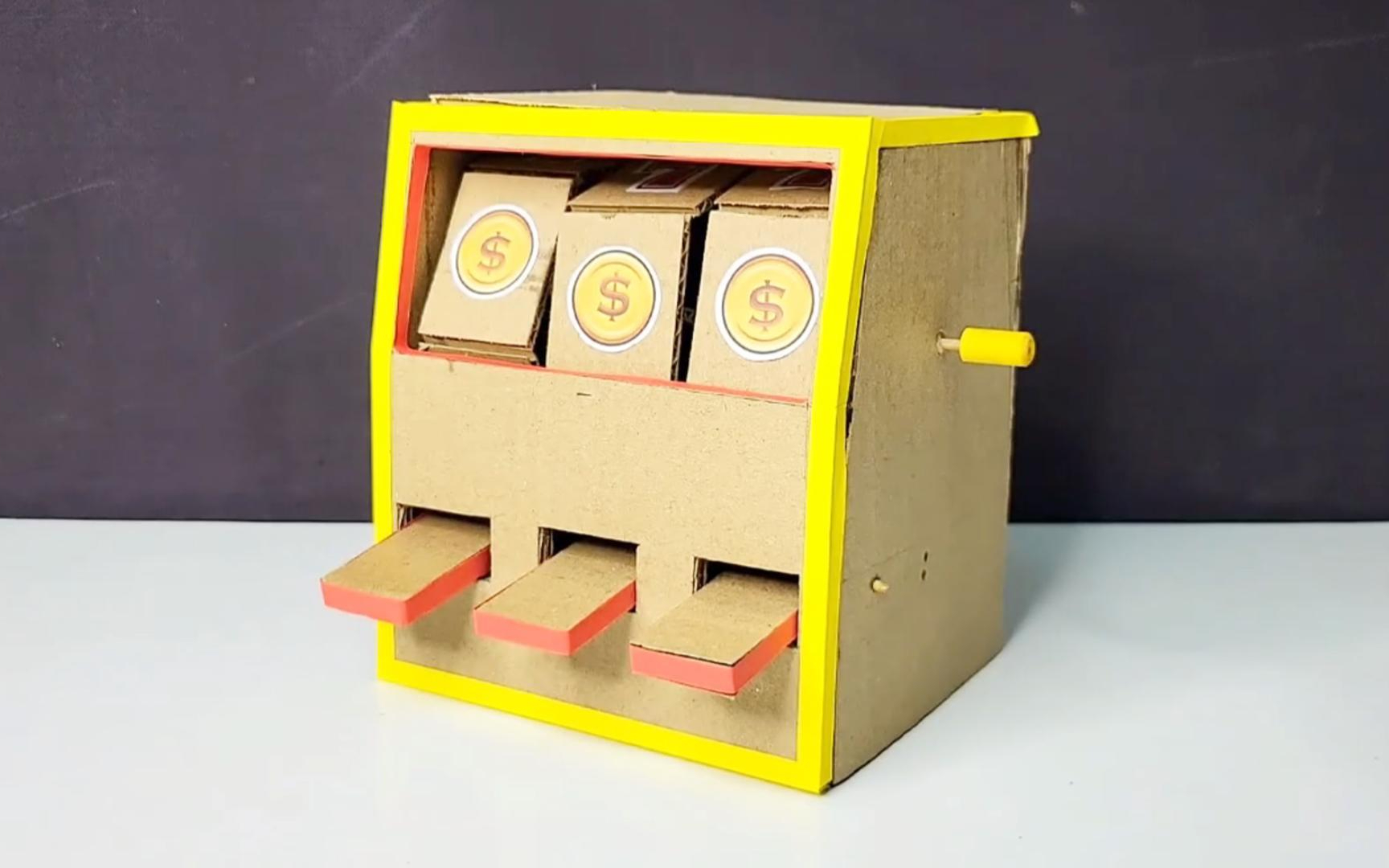用硬纸板手工制作幸运游戏机玩具,简单好玩,周末有得玩了!