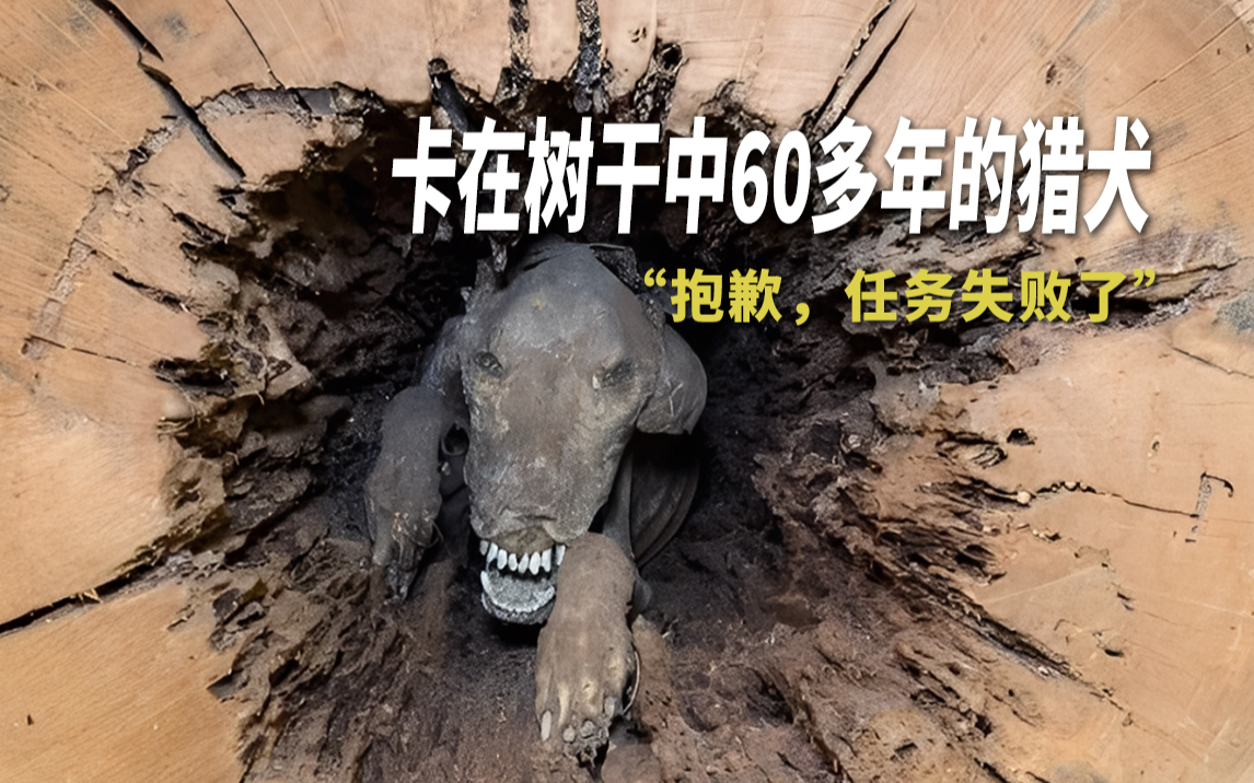 卡在树干中60多年的猎犬:抱歉,没抓住那只浣熊。