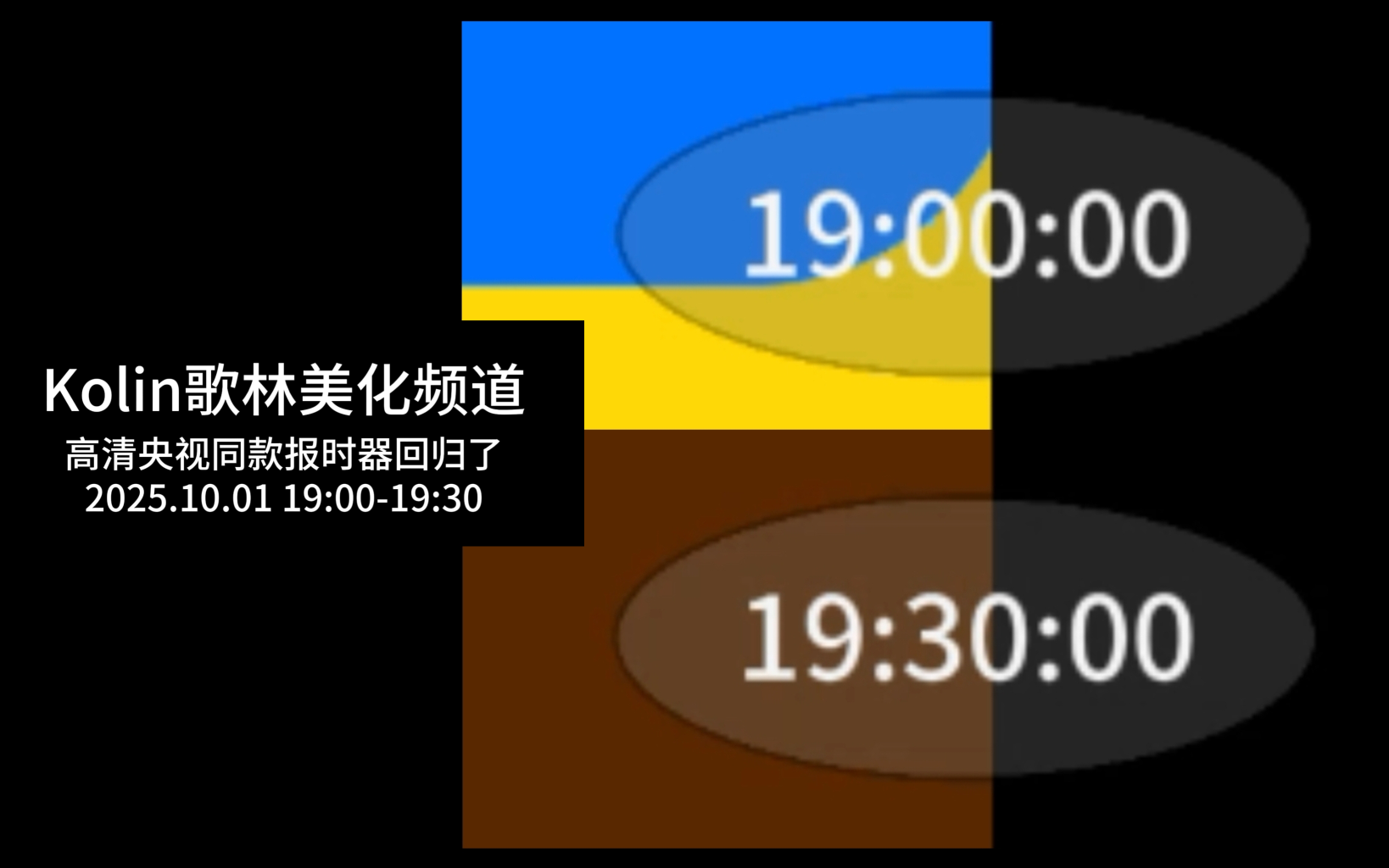 之江台Kolin歌林美化频道 高清报时器回归了 2025年10月1日 19时~19点30分