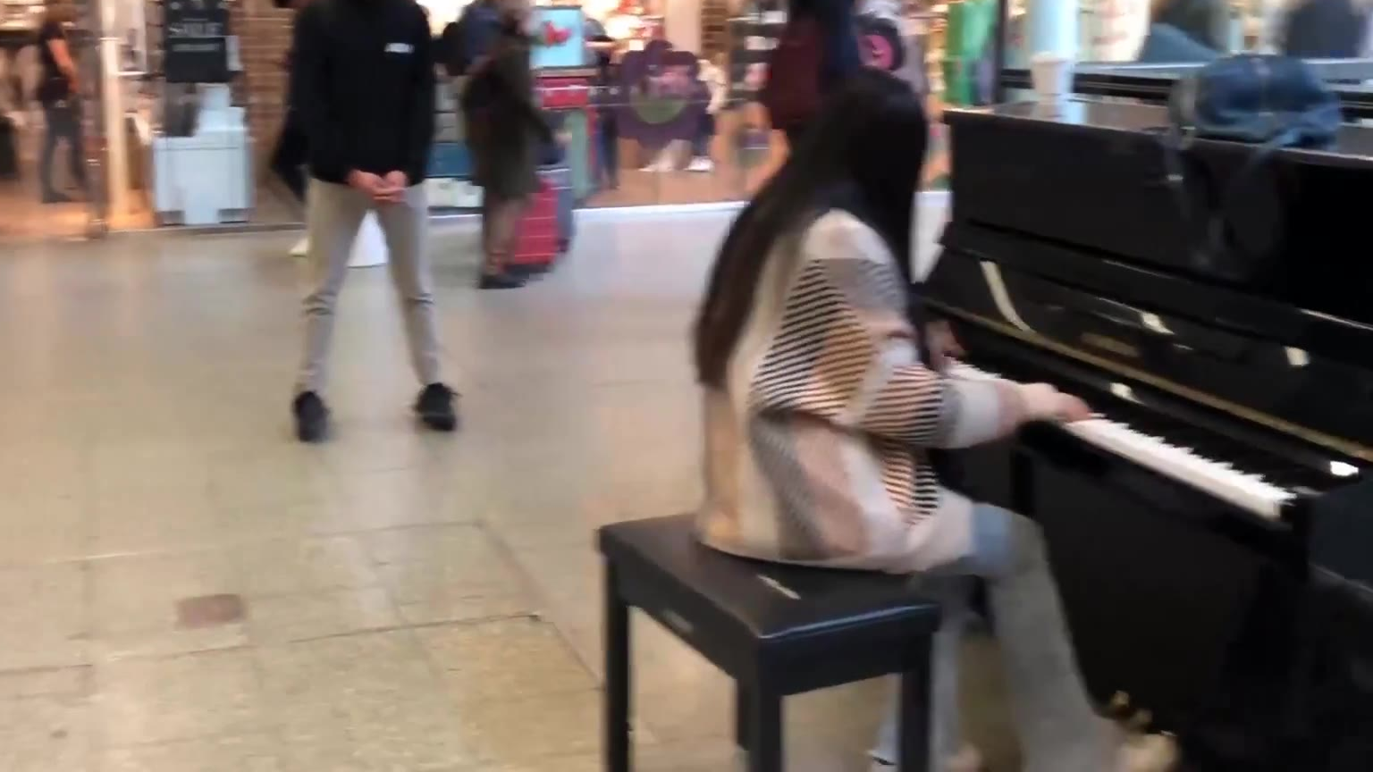 在伦敦火车站即兴演奏《钢铁洪流进行曲》钢琴版